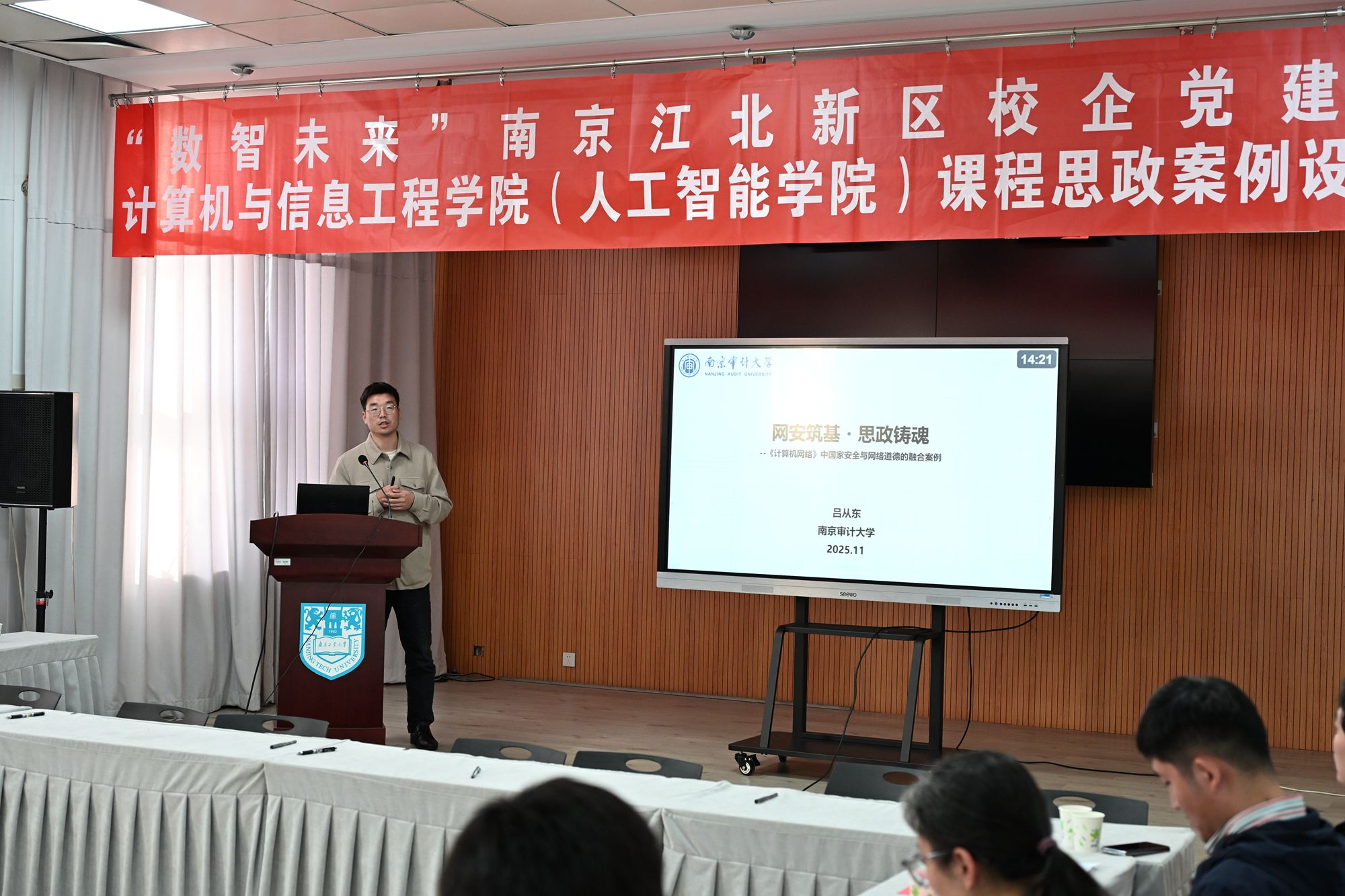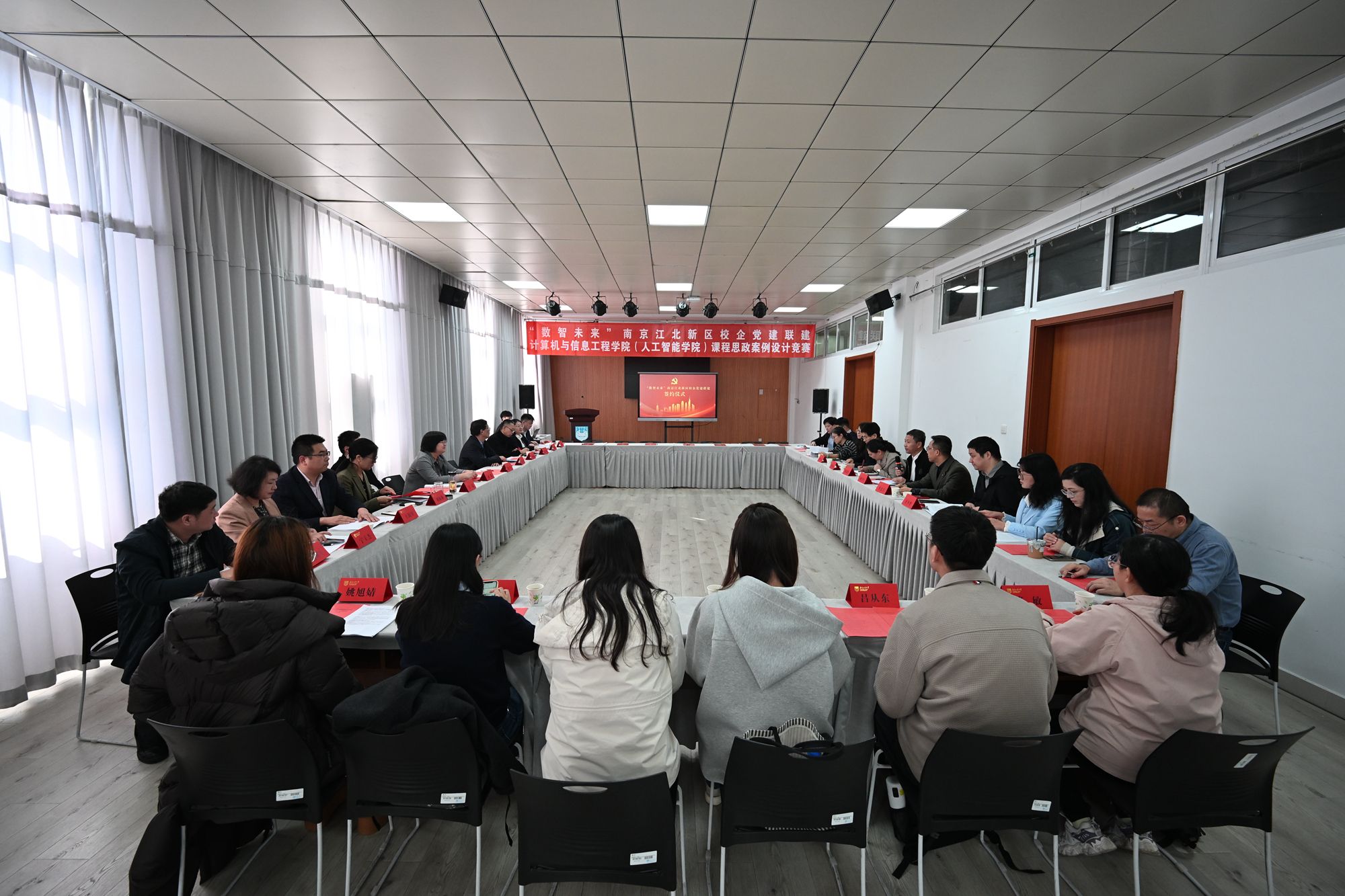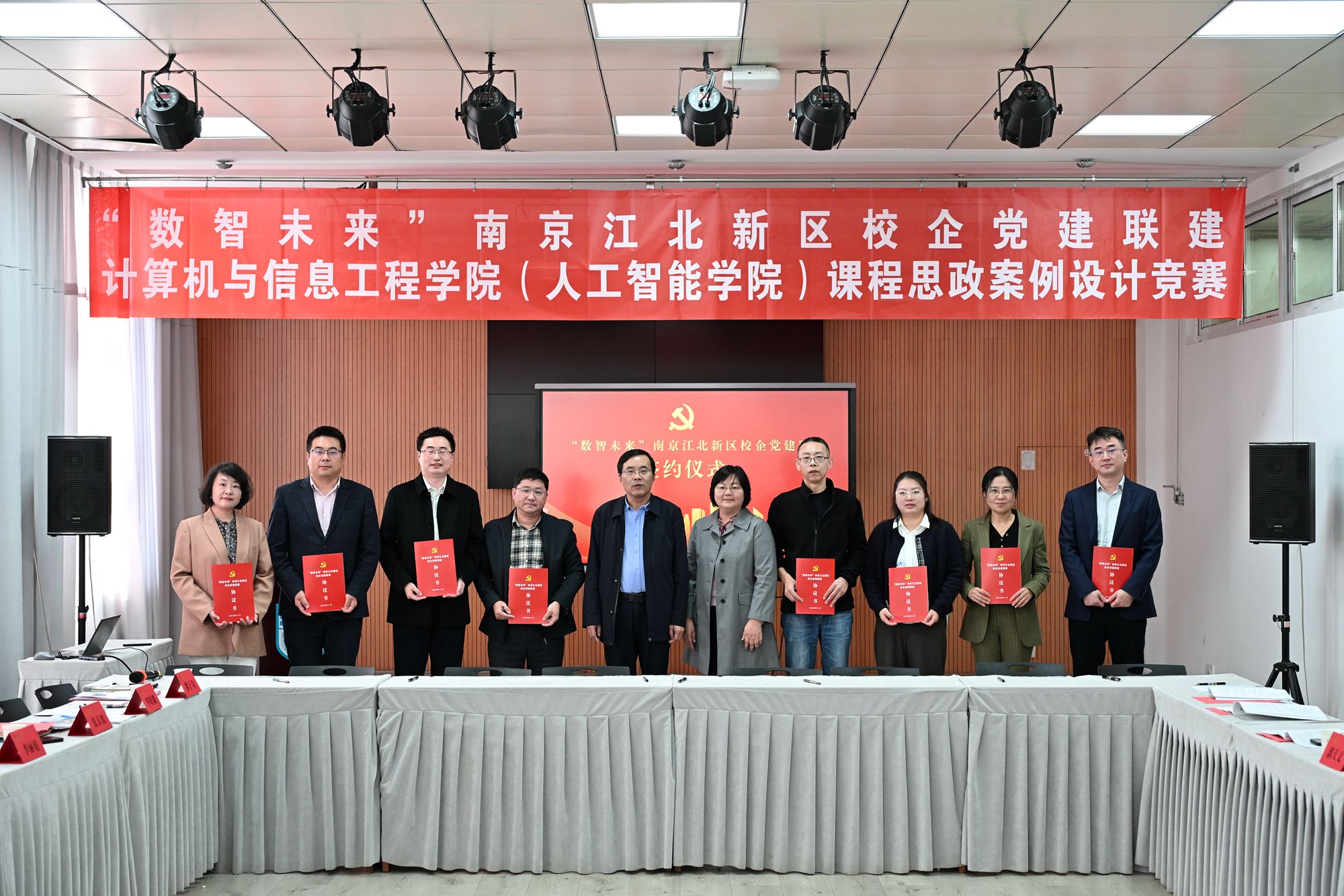 11月5日下午,伟德国际1946bv官网举办南京江北新区校企党建联建续约签订仪式暨第三届课程思政案例设计竞赛。副校长郭万牛,党委常委、组织部部长张健,党委常委、宣传部部长夏侃,教务处副处长李丽娟,南京农业大学智慧农业伟德国际1946bv官网、南京信息工程大学计算机伟德国际1946bv官网、南京审计大学计算机伟德国际1946bv官网、南京安元科技股份有限公司、南京铁道职业技术伟德国际1946bv官网未来交通伟德国际1946bv官网、南京科技职业伟德国际1946bv官网信息工程伟德国际1946bv官网、南京擎天科技有限公司等七家参与联建的党组织负责人出席活动。