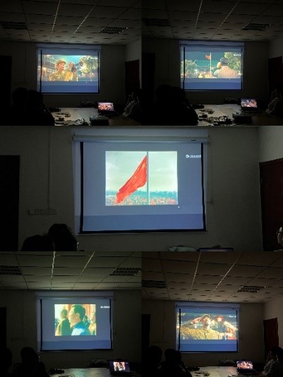 活动最后,大家观看了红色影片《我和我的祖国》。在激动人心的剧情里思考个人与祖国的联系,进一步培养身为中华儿女的民族自豪感。