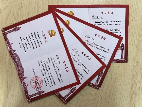 伟德国际1946bv官网党委为过“政治生日”的党员们精心制作印有入党誓词和生日寄语的“政治生日”贺卡。闪闪发光的党徽,洋溢着热情的“政治生日”贺词,上面记录着入党时间和党组织深深的祝福,让党员留下一份深刻的“政治生日”印记,激励他们充分发挥党员的模范带头、示范引领作用。