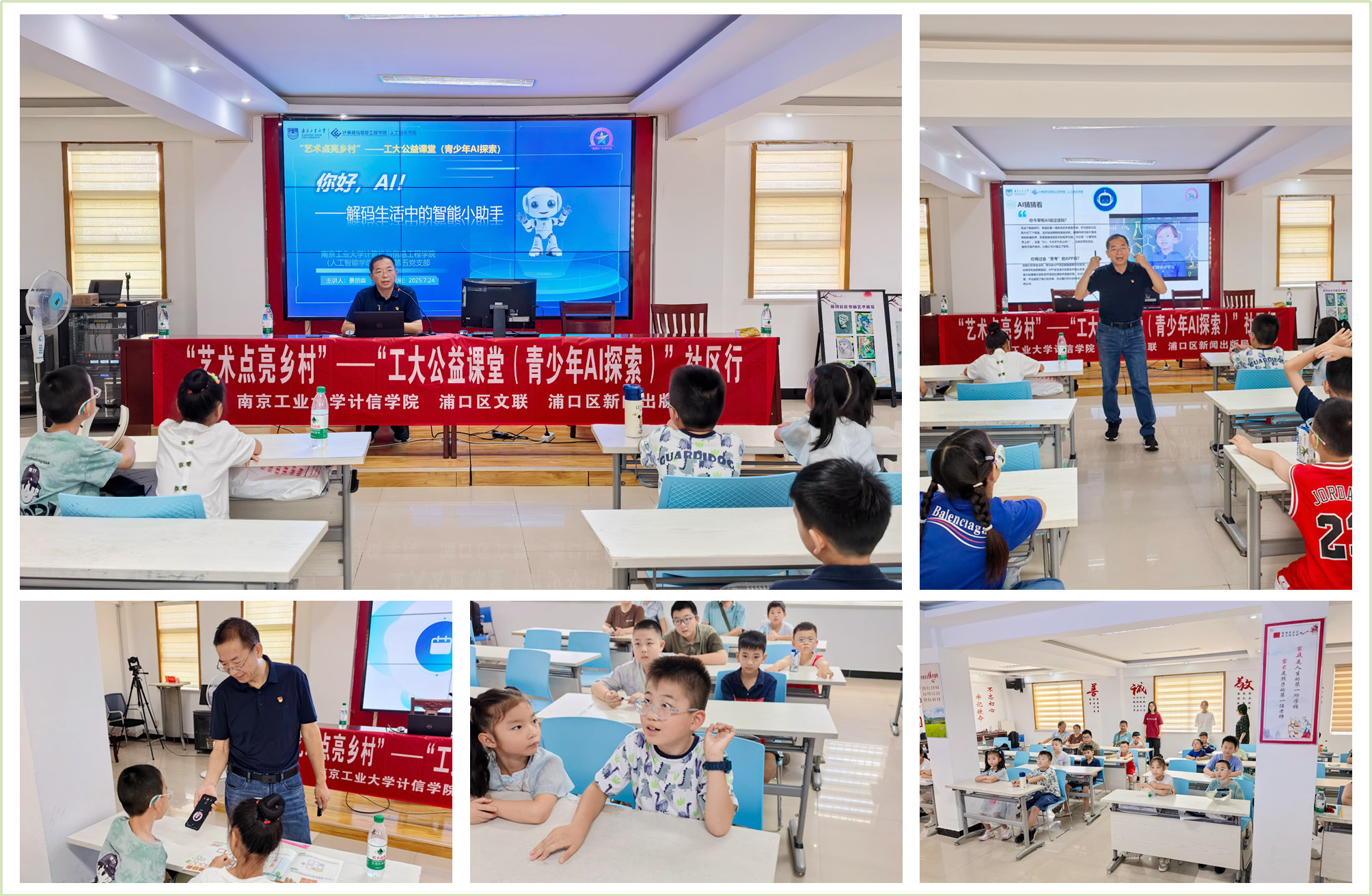 7月24日,由南京工业大学、浦口区文联、浦口区新闻出版局联合策划的“艺术点亮乡村”——工大公益课堂(青少年AI探索)社区行活动,在江浦街道新河社区正式拉开帷幕。此次活动由南京工业大学伟德国际1946bv官网员工第五党支部精心组织,旨在通过一系列富有创意和系统性的科普讲座,激发青少年对人工智能技术的兴趣与探索欲。