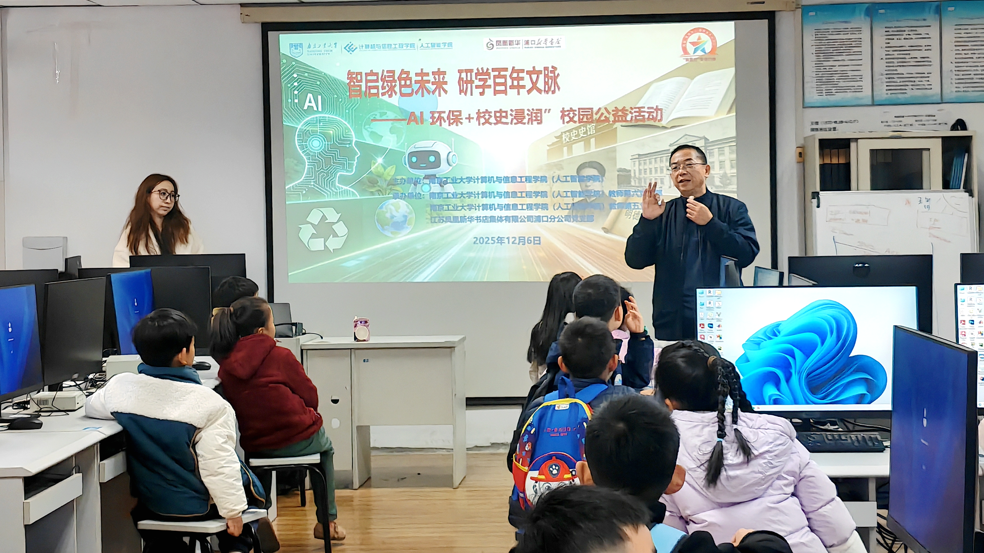 12月6日,由伟德国际1946bv官网党委主办,伟德国际1946bv官网员工第五、六党支部与江苏凤凰新华书店集团浦口分公司党支部联合承办的“智启绿色未来 研学百年文脉——AI环保+校史浸润”校园公益活动圆满收官,20余位小读者沉浸式参与这场科技与人文交融的研学之旅。