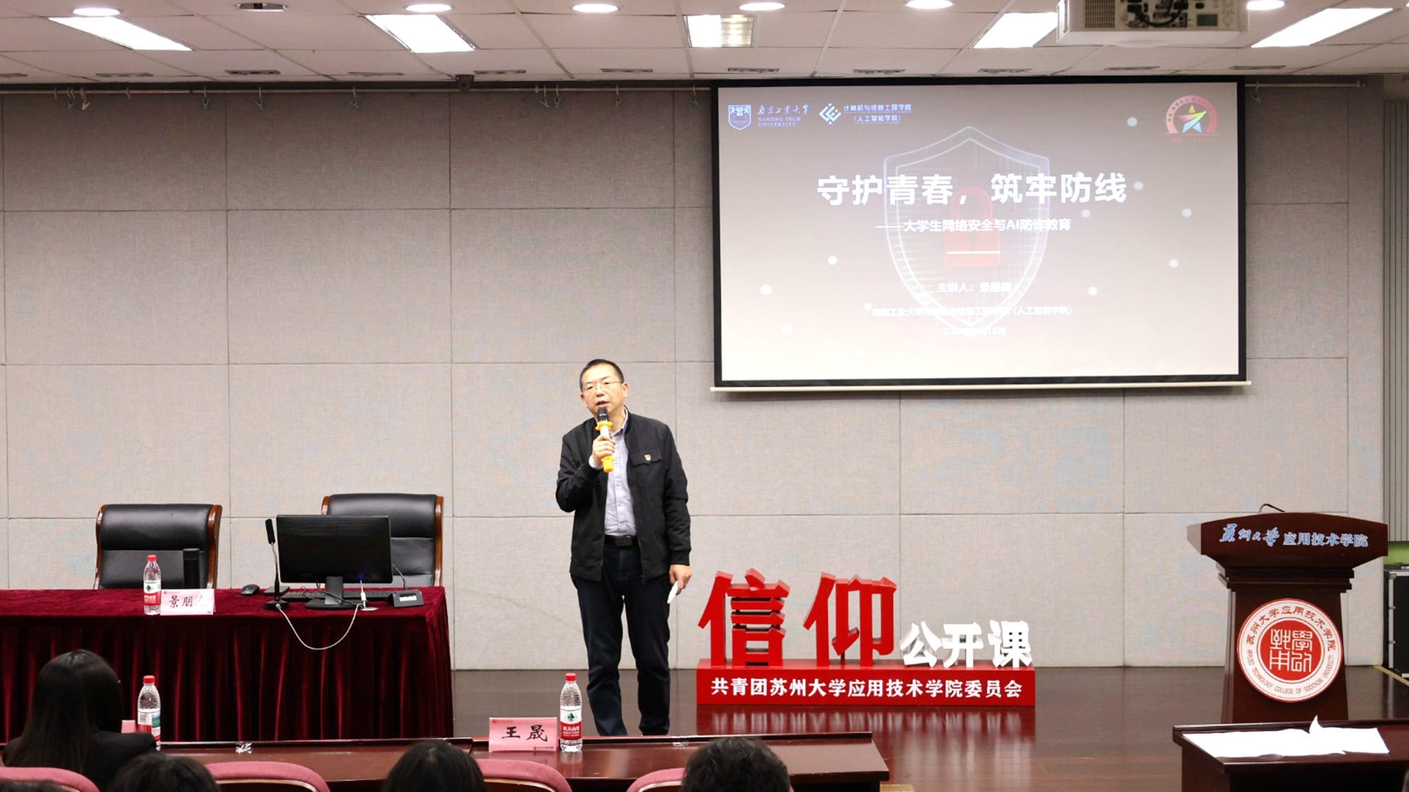 4月15日全民国家安全教育日,应苏州大学应用技术伟德国际1946bv官网团委邀请,伟德国际1946bv官网员工第五党支部书记景朋森,在苏州大学“信仰公开课”校级示范课(青马公开课)——“国家安全 青春挺膺”主题活动中,为200余名团员及入团积极分子,作“守护青春,筑牢防线——大员工网络安全与AI防诈教育”专题讲座,以专业力量护航青年成长,筑牢校园安全防线。